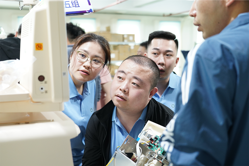选手们在一竞技官网血液净化设备测试车间实地观摩